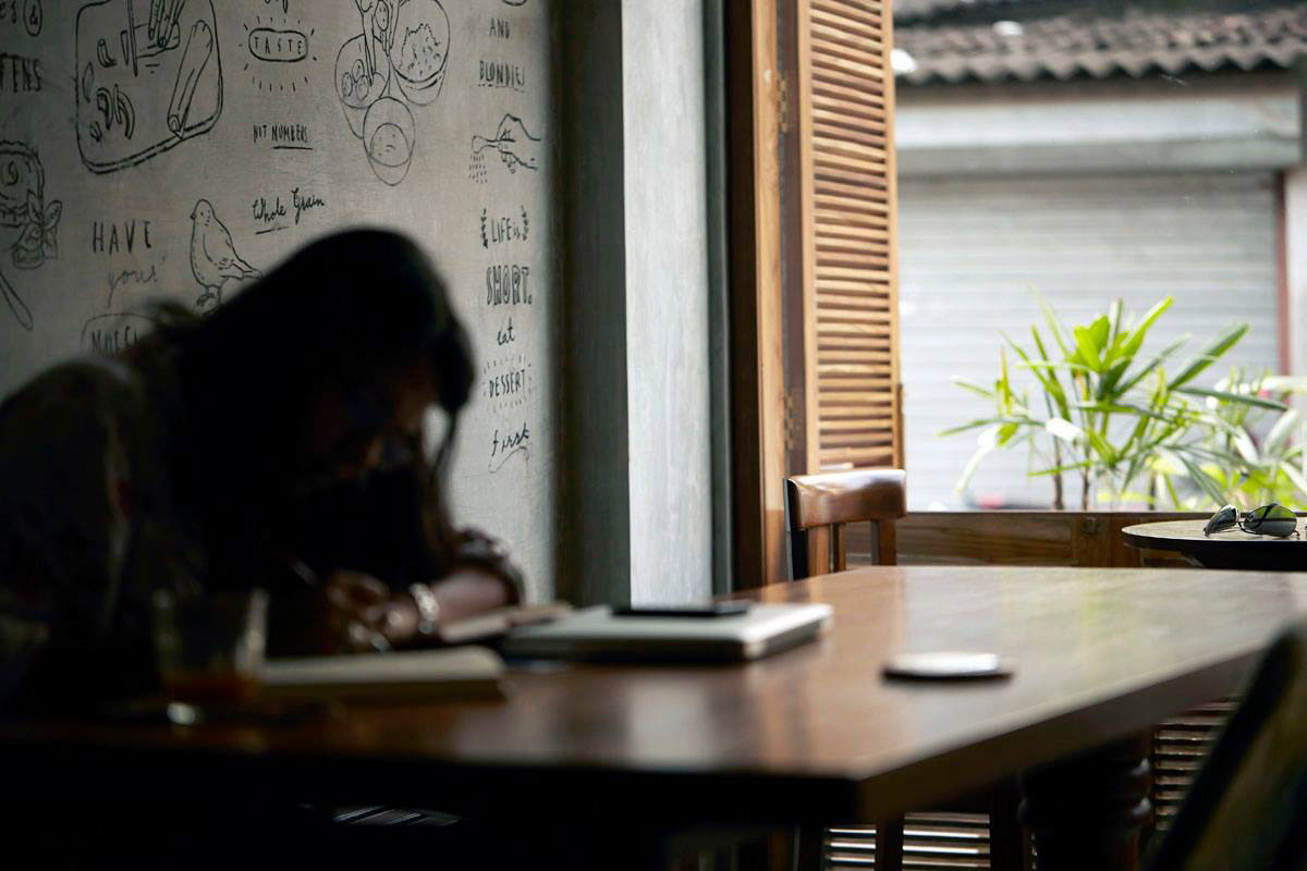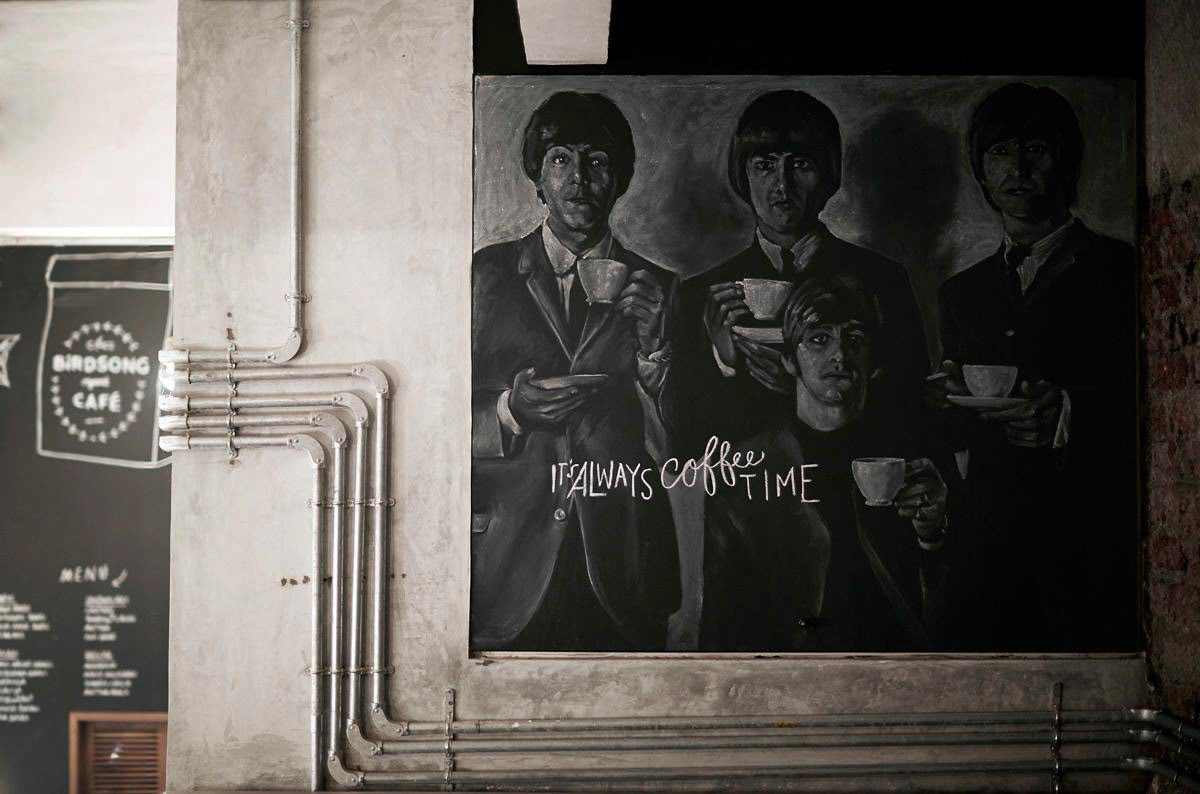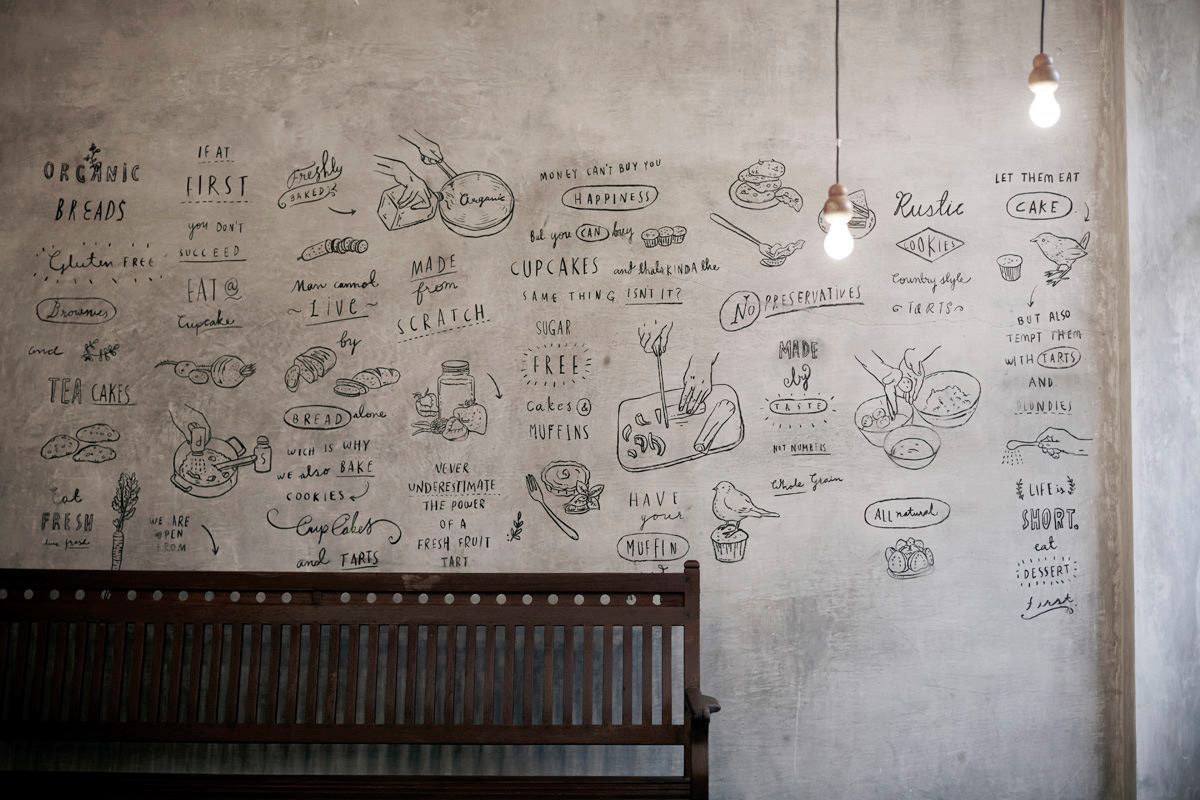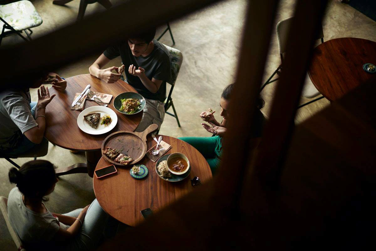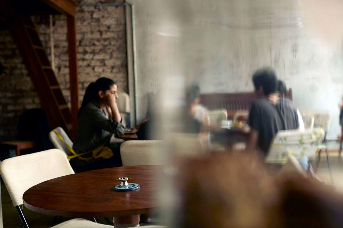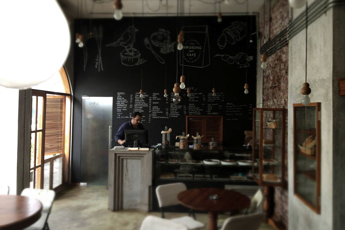 An all-day organic cafe, Birdsong is an airy, high-ceilinged retreat that uses light, illustration and typography to call to mind the charm and idyll of a hillside bungalow in the midst of bustling Mumbai. .